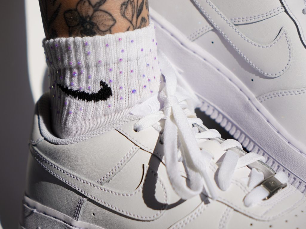 Elegantní spojení komfortu a jemného třpytu. Tyto kotníkové ponožky jsou pečlivě ručně zdobené barevnými kamínky, které z nich dělají stylový doplněk pro každodenní nošení i speciální příležitosti. Díky příjemnému materiálu a preciznímu zpracování jsou ideální volbou pro ty, kteří hledají originalitu a kvalitu v každém detailu. Kamínky jsou na ponožky nalepeny pomocí speciálního lepidla velmi odolnou metodou, která vydrží jak běžné nošení, tak i jejich praní. Dodají Vašemu outfitu ten správný šmrnc a pod správným úhlem se krásně třpytí!